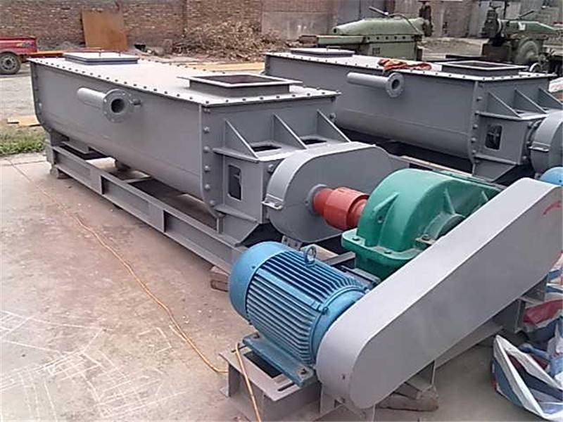 同時,還可在出料口料槽端部安裝一小段反旋向葉片,以防端部堵料。對進入粉塵加濕攪拌機的物料進行必要的清理,以防止大雜或纖維性雜質(zhì)進入機內(nèi)引起堵塞。