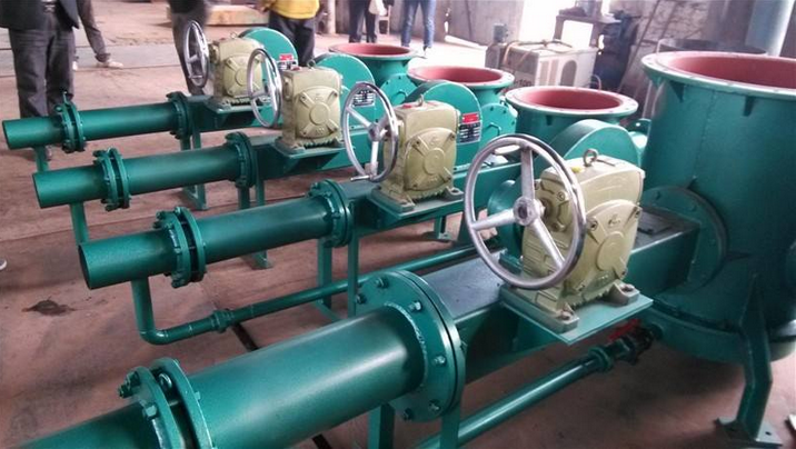 輸送管道可以在水平面任意轉(zhuǎn)彎,垂直提升,在輸送管道末段可以采用垂直向下等布置形式。當(dāng)受到地形氣力輸送料封泵輸送管道必須采用傾斜布置時,其傾角不能大于5度。